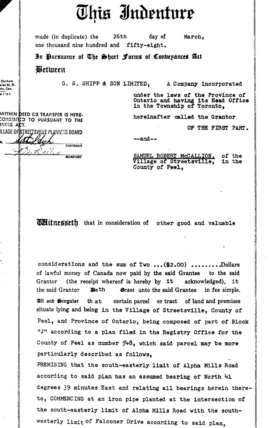 In the same year as Mississauga was born the McCallions and the Randles created a company to profit greatly in the boom town that Mississauga would be, by among other things