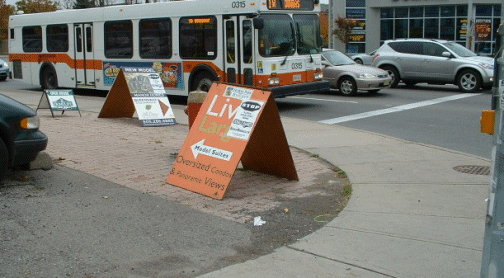 It will also include a picture of a unlawful developers A-Frames sign sitting literally at the door of City hall, right outside By-law enforcement.