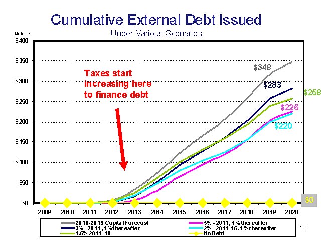 "We're trying to make decisions now for others who will follow, so they won't be faced with a (difficult financial) situation," - so say the Mayor, those who follow the Queen of Sprawl are doomed from the outset, we now know that for sure. ]