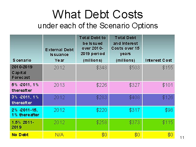 The second scenario would see the City spend all of its reserves except the hydro fund. Then, "we would become our own banker," borrowing money from the hydro fund.