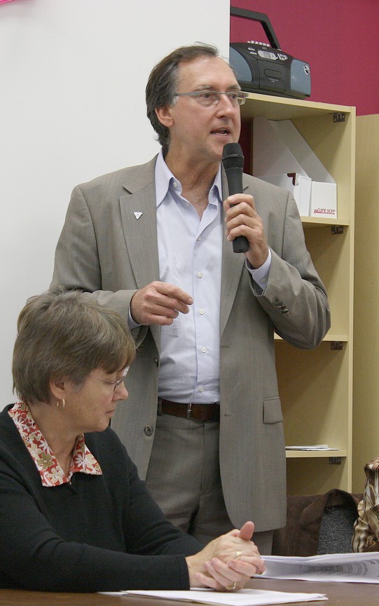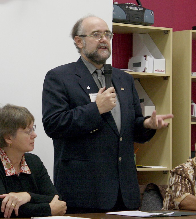 Donald Barber answers one of the questions from the audience. |