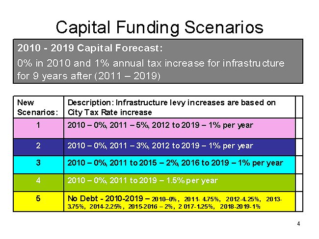 The second scenario would see the City spend all of its reserves except the hydro fund. Then, "we would become our own banker," borrowing money from the hydro fund.