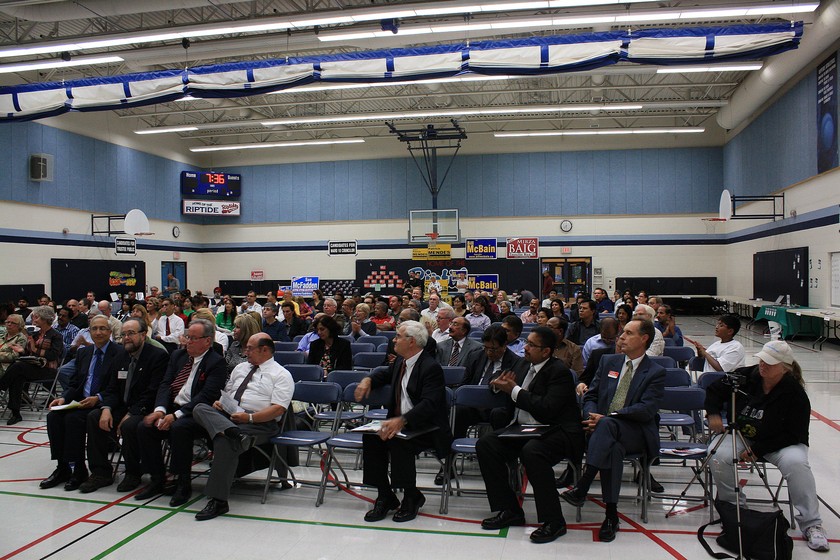 At the end (on time), a crowd to meet and get picture with the Mayor - what are we, spam sandwiches? Not listening to what said? John Briers, President Churchill Meadows Residents Association, Hazel McCallion & guess who getting in picture - again. |
